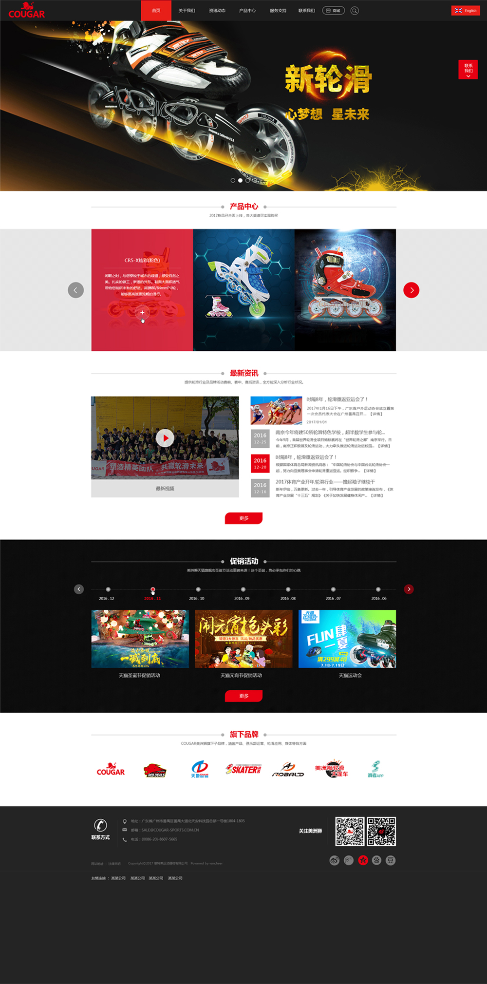 廣州市蒙特萊運動器材有限公司成立于2001年,專業(yè)制造"COUGAR美洲獅"輪滑鞋、輪滑球裝備、滑板、滑板車及相關輪滑配件等系列產(chǎn)品,是一集設計開發(fā)、生產(chǎn)、銷售為一體的企業(yè)。多年來一直以優(yōu)質的服務迎合市場,打造個性化的市場體驗,引領輪滑行業(yè)潮流,真正推動輪滑事業(yè)的發(fā)展,獲得廣大消費者及行業(yè)精英的一致好評。 COUGAR美洲獅先后與青奧會、速度輪滑錦標賽、國際輪滑聯(lián)合會(FIRS)達成合作,并在2017年成為國禮輪滑品牌,國禮榮耀享譽中外。