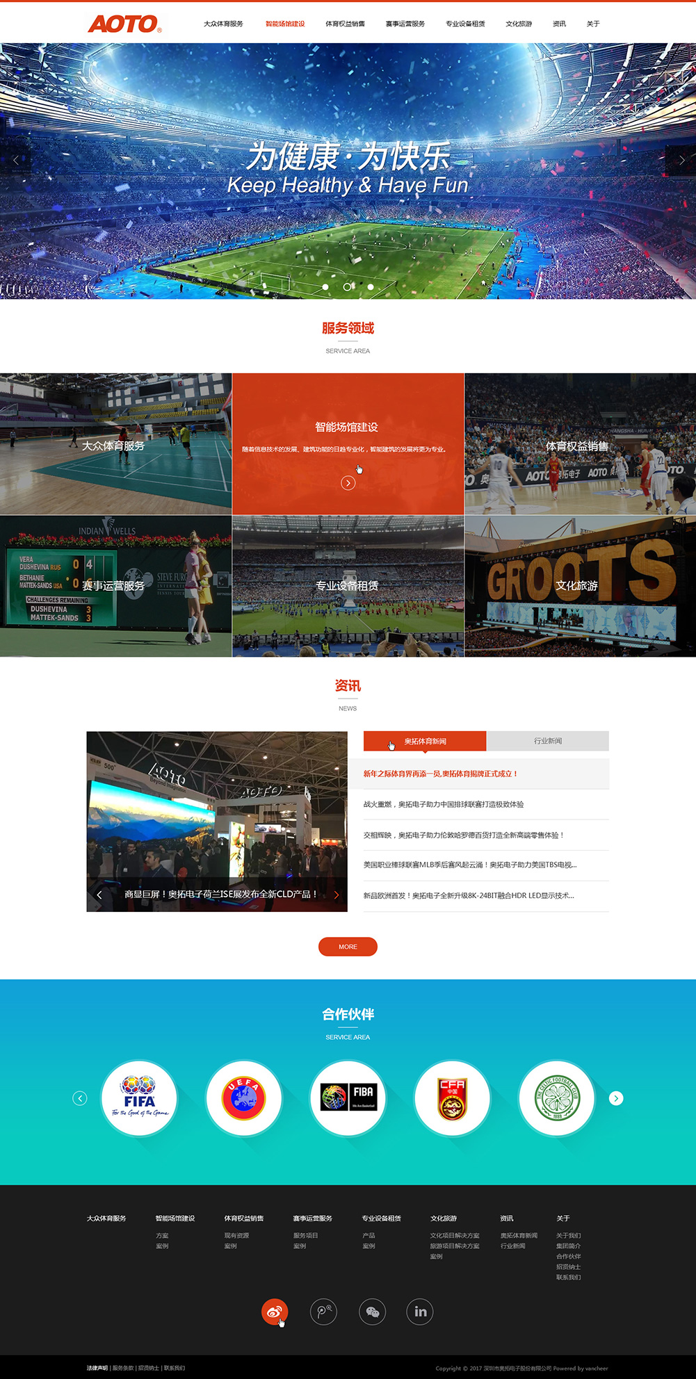 深圳市奧拓體育文化發(fā)展有限公司(以下簡稱“奧拓體育”)為深圳市奧拓電子股份有限公司(股份代碼:002587)的控股子公司,具有多年的國際體育業(yè)務(wù)經(jīng)驗,是多項國際體育賽事設(shè)備標(biāo)準制定者,擁有國際化的專業(yè)團隊和覆蓋全球的服務(wù)網(wǎng)絡(luò),是FIFA、FIBA、UEFA、中國之隊等戰(zhàn)略合作伙伴。