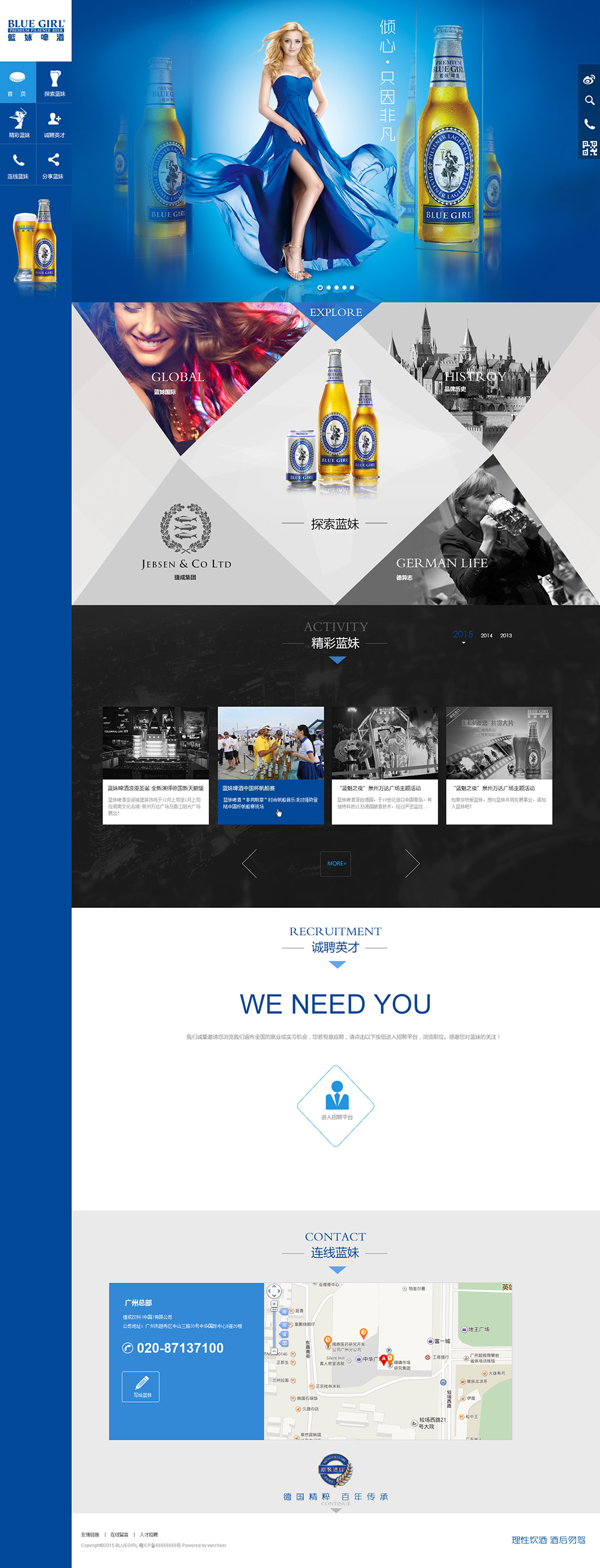 藍(lán)妹啤酒起源于18世紀(jì)德國北部城市不萊梅,1906年捷成洋行從德國整體收購藍(lán)妹啤酒,沿用藍(lán)妹啤酒優(yōu)良的傳統(tǒng)秘方精心釀制,并正式引入中國大陸,中國香港以及中國臺灣市場。時(shí)至今日,市面上所銷量的原裝進(jìn)口藍(lán)妹啤酒仍是沿用此獨(dú)有技術(shù)及秘方釀制而成。