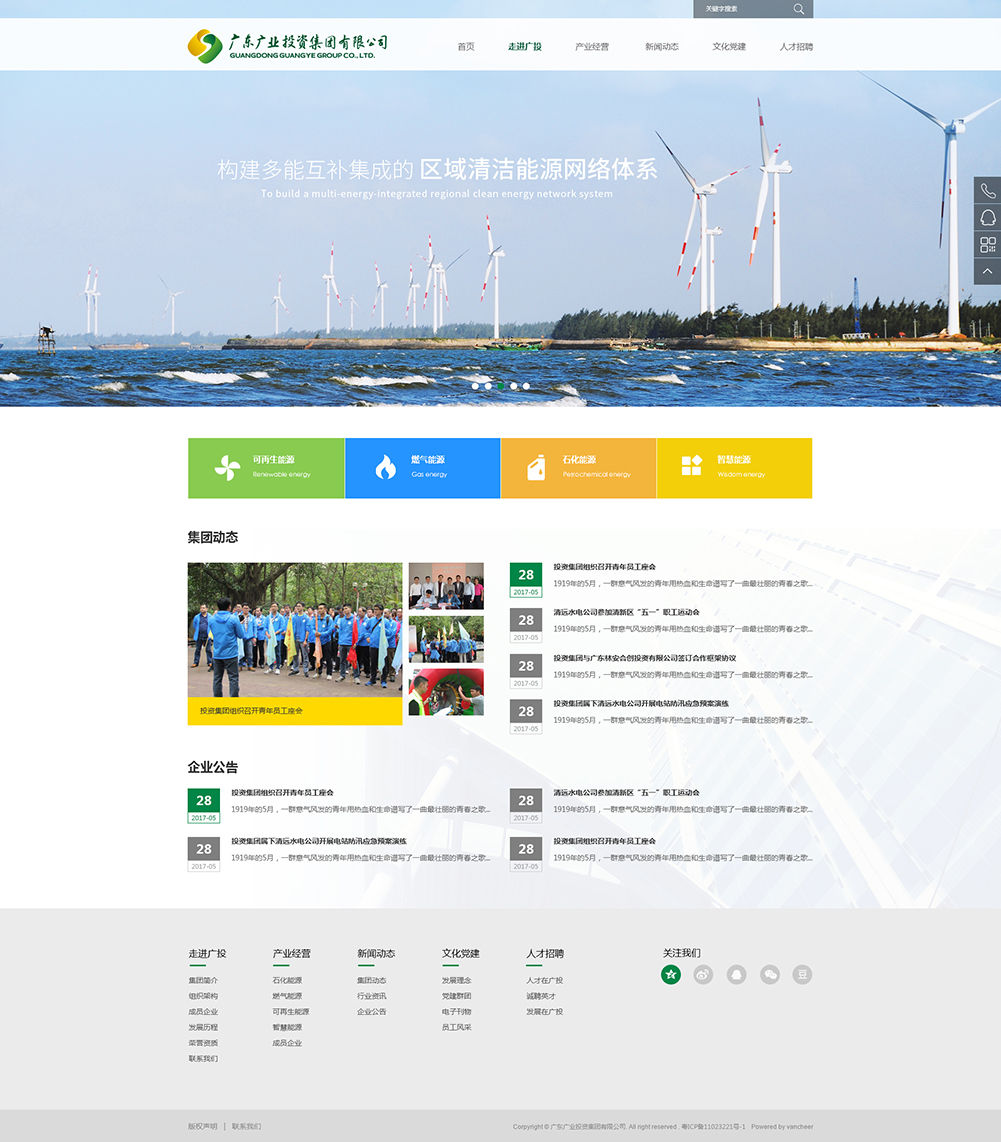 廣東廣業(yè)投資集團有限公司是一以清潔能源為主業(yè),以推動“綠色發(fā)展”為已任,致力于南粵大地“水更清、地更綠、天更藍”的產(chǎn)業(yè)集團。業(yè)務(wù)主要涵蓋石化能源、燃氣能源、可再生能源和智慧能源四個板塊。 公司成立于1992年,是廣東省廣業(yè)集團有限公司直屬全資國有企業(yè),注冊資本9.6億元,擁有2座水力電站、2座風力發(fā)電站;形成高品質(zhì)油品和天然氣采購、運輸、倉儲、銷售全產(chǎn)業(yè)鏈服務(wù)體系,目前擁有油氣站34座、7.8萬立方米油庫、5000噸級碼頭、廣州地區(qū)一的CNG(壓縮天然氣)母站,是廣東省內(nèi)主要的燃氣供應(yīng)商之一,在華南區(qū)域燃氣行業(yè)里占據(jù)30%以上的市場份額,也是廣東省內(nèi)四大成品油批發(fā)商,高品質(zhì)油品供應(yīng)位列省屬國有企業(yè)一名。