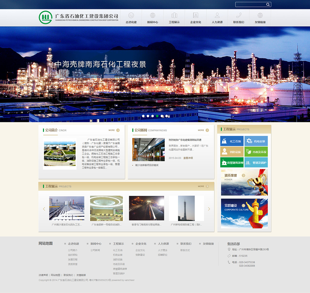 廣東省石油化工建設(shè)集團(tuán)公司(以下簡(jiǎn)稱公司)是廣東省大型國(guó)有建筑施工企業(yè),已經(jīng)有四十多年的歷史。具有建設(shè)部批準(zhǔn)的化工石油工程施工總承包、機(jī)電設(shè)備安裝工程專業(yè)承包、消防設(shè)施工程專業(yè)承包和管道工程專業(yè)承包四個(gè)一級(jí)資質(zhì)以及燃?xì)馐┕た偝邪⒎课萁ㄖこ炭偝邪任鍌€(gè)二級(jí)資質(zhì)。