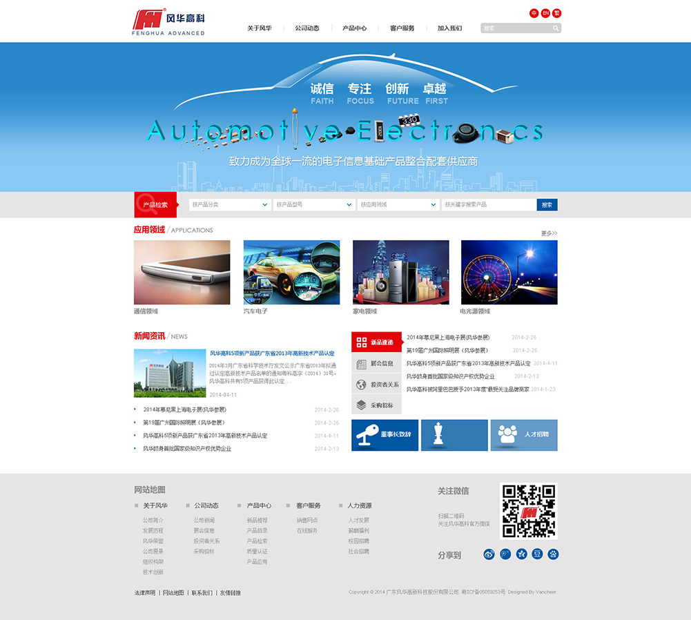 廣東風(fēng)華高新科技股份有限公司于1996年在深圳證券交易所掛牌上市(證券簡稱風(fēng)華高科,證券代碼000636),是一專業(yè)從事高端新型元器件、電子材料、電子專用設(shè)備等電子信息基礎(chǔ)產(chǎn)品的高科技上市公司。公司自1984年進入電子元器件行業(yè)以來,實現(xiàn)了跨越式的發(fā)展,現(xiàn)已成為國內(nèi)的新型元器件及電子信息基礎(chǔ)產(chǎn)品科研、生產(chǎn)和出口基地,擁有自主知識產(chǎn)權(quán)及核心產(chǎn)品關(guān)鍵技術(shù)的國際知名新型電子元器件行業(yè)大公司。