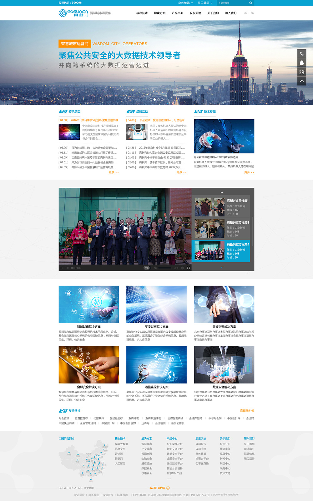 高新興科技集團(tuán)股份有限公司(股票代碼300098)(以下簡(jiǎn)稱“公司”)是業(yè)內(nèi)的智慧城市物聯(lián)網(wǎng)應(yīng)用和服務(wù)提供商。自1997年公司成立起,長(zhǎng)期致力于感知、連接、平臺(tái)等物聯(lián)網(wǎng)核心技術(shù)的研發(fā)和行業(yè)應(yīng)用,以物聯(lián)網(wǎng)技術(shù)為核心,聚焦公共安全、智慧城市,探索車聯(lián)網(wǎng)等重點(diǎn)行業(yè)應(yīng)用。 公司專注于智慧城市物聯(lián)網(wǎng)發(fā)展領(lǐng)域,業(yè)務(wù)涵蓋智慧城市、平安城市、智能交通、執(zhí)法監(jiān)督、無線通信、通信安全、金融安全、鐵路安全等,為全國(guó)各省市的公安、 交警等部門及鐵路、銀行、運(yùn)營(yíng)商等多領(lǐng)域提供產(chǎn)品和服務(wù)。