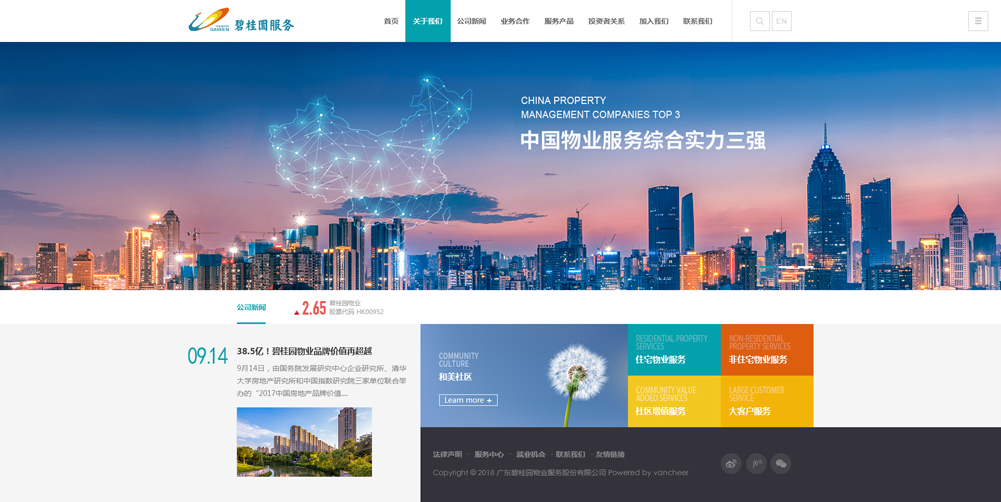 碧桂園服務控股有限公司創(chuàng)立于1992年。經(jīng)過26年的穩(wěn)健發(fā)展,公司業(yè)務涵蓋住宅、商業(yè)物業(yè)、寫字樓、多功能綜合樓、政府及其他公共設施、產業(yè)園、高速公路服務站、公園及學校等多種業(yè)態(tài)。 秉持“急業(yè)主所急,想業(yè)主所想”、“一切以業(yè)主為中心”的服務理念,碧桂園服務以扎實的業(yè)務,精益化管理,完成英國標準協(xié)會(BSI)質量管理體系ISO、環(huán)境管理體系ISO及職業(yè)健康安全體系三大認證,建立完善和精益化的物業(yè)管理和服務體系。依托強大的線下服務體系,整合社區(qū)商業(yè)資源,致力讓業(yè)主體驗物業(yè)服務的美好,圍繞業(yè)主不動產保值增值,提供全生命周期服務。